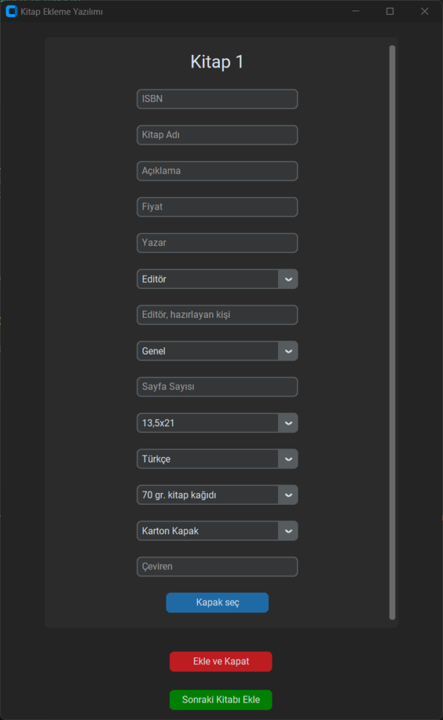 requestslibrary to upload book cover images. - Multi-Format Export: Supports exporting book data in XLSX, DOCX and XML formats for marketplace integration.